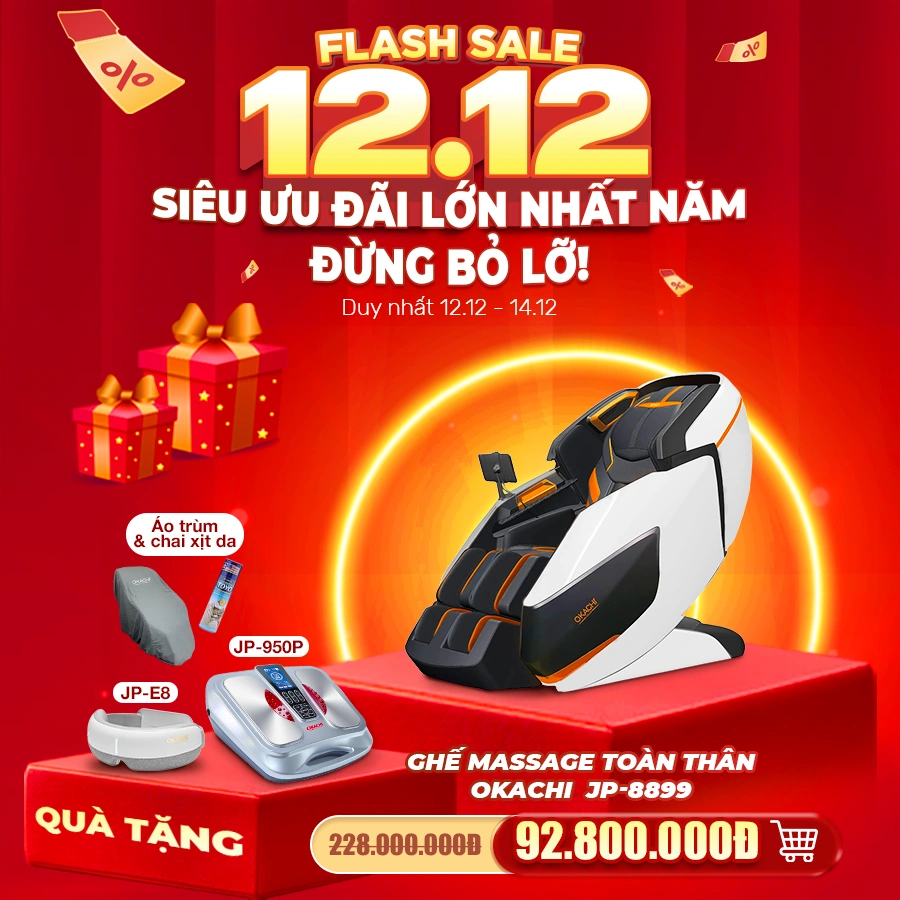 Chỉ diễn ra từ 12/12 - 14/12, chương trình Flash Sale đặc biệt của Okachi mang đến các sản phẩm chăm sóc sức khỏe với mức giảm giá sâu chưa từng có. Đây là cơ hội duy nhất trong năm để bạn sở hữu các thiết bị massage và chăm sóc sức khỏe cao cấp với ưu đãi cực khủng và nhiều quà tặng hấp dẫn. Hãy nhanh tay và đừng bỏ lỡ!