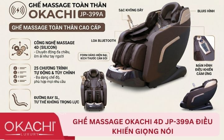 OKACHI LUXURY JP-388 định hình là ghế dùng massage có điều khiển giọng nói giá rẻ, phù hợp cho phân khúc gia đình. Thiết bị vận hành dựa trên vi mạch nhận diện giọng nói offline độc lập.