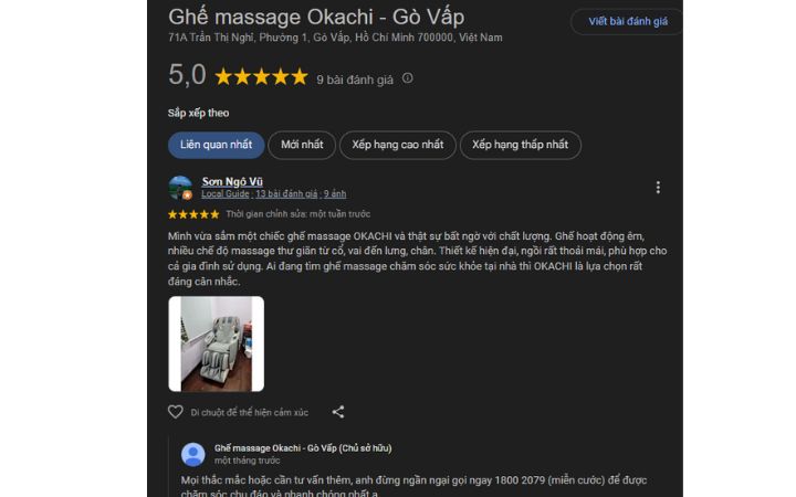 Những phản hồi này chứng minh rằng OKACHI Gò Vấp không chỉ cung cấp ghế massage chất lượng mà còn mang đến dịch vụ mua sắm đáng tin cậy và chuyên nghiệp cho khách hàng.