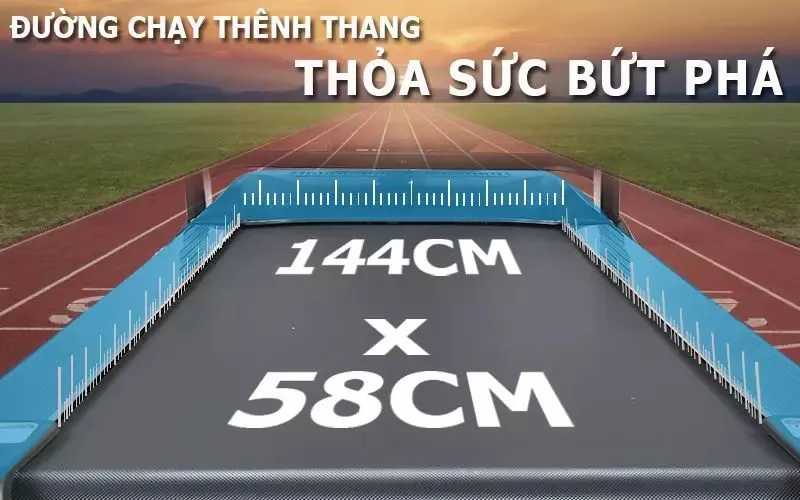 Kích thước bàn chạy là yếu tố quyết định đến sự thoải mái khi sử dụng cho người chạy. Kích thước bàn lớn sẽ cải thiện tốt hơn quá trình tập luyện và giúp người dùng chạy lâu hơn. Kích thước máy chạy bộ hẹp khiến bước đi của người dùng không được thoải mái. Từ đó, khiến quá trình đào tạo không hiệu quả. Bạn nên chọn máy chạy bộ cao cấp có chiều rộng 40cm khi sử dụng tại nhà. Đối với phòng tập, nên chọn thiết bị có chiều rộng từ 50cm trở lên.