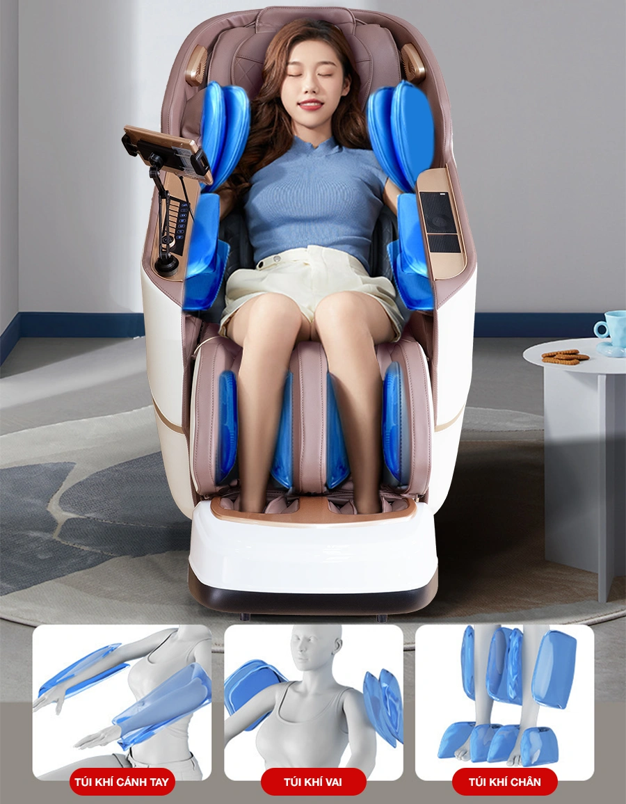 - Công nghệ con lăn 4D tiên tiến mô phỏng chân thực các kỹ thuật massage chuyên nghiệp.