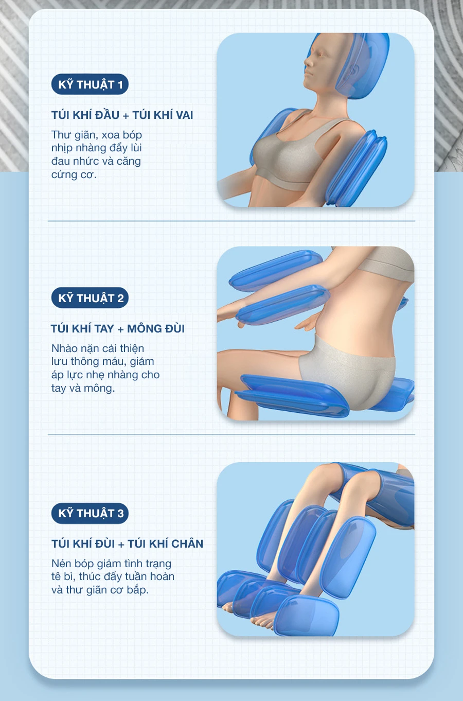 | Công nghệ con lăn | Bi lăn trải dài từ cổ đến mông |