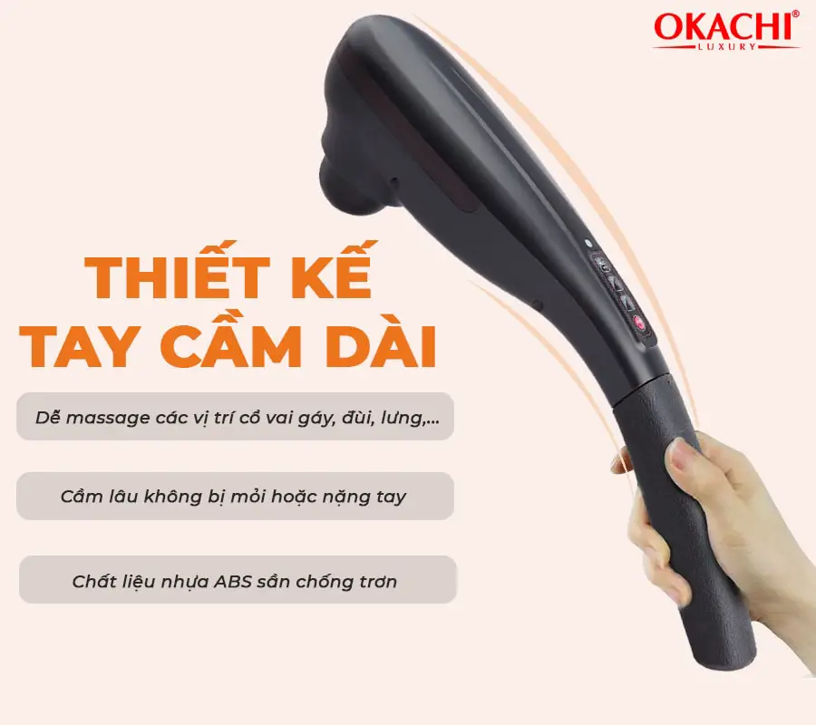 Với tay cầm cán dài, thon gọn thiết kế chống trượt giúp bạn tự massage cho mình kể cả những vị trí khó như vai, gáy, lưng,… mà không phải nhờ đến sự giúp đỡ của người thân.