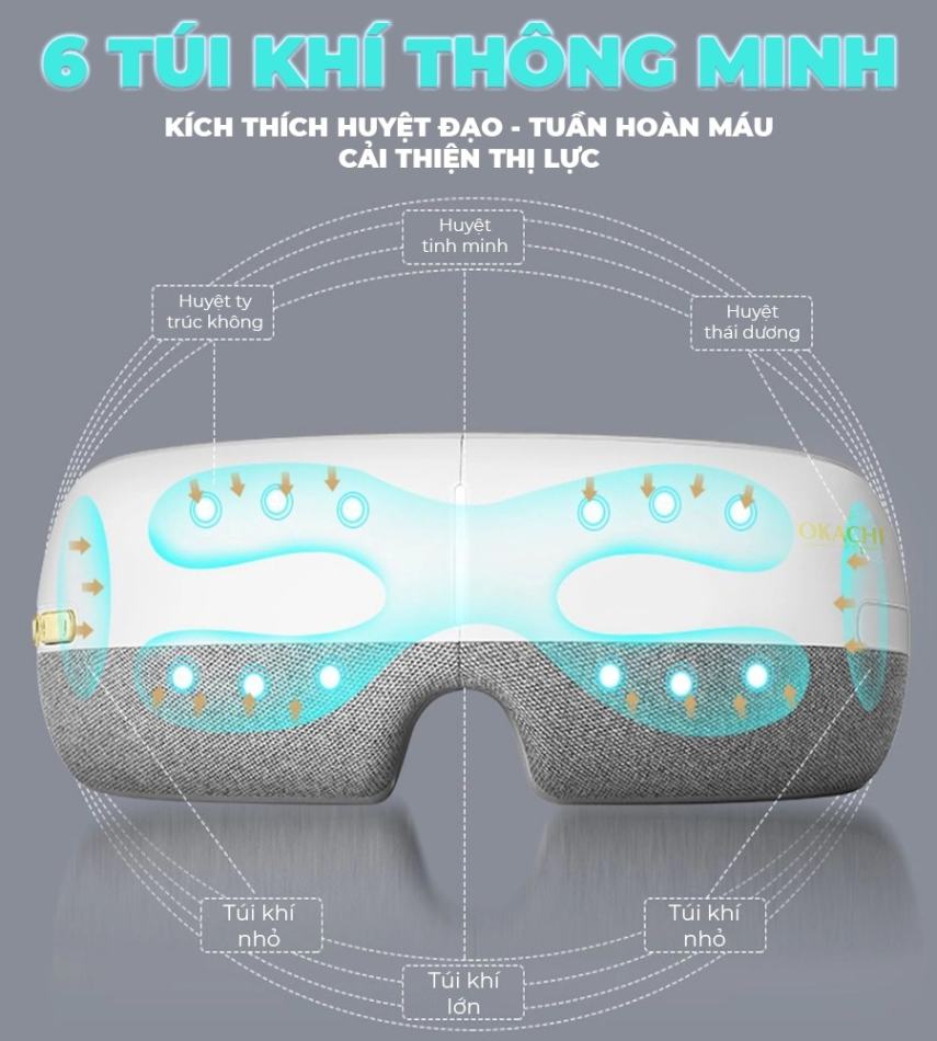 ✔ 6 túi khí massage thông minh kích thích huyệt đạo, tuần hoàn máu, cải thiện thị lực.